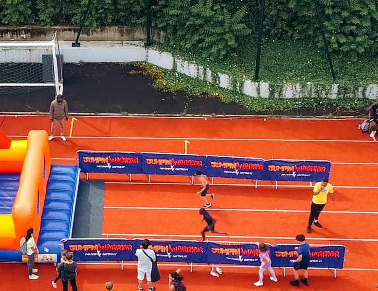 Parfait pour les animations estivales, les fêtes de quartiers, les team buildings ou les plages urbaines, la JUMPIN' WARRIOR teste l’endurance, l’agilité et l’esprit d’équipe. Une aventure hors du commun pour renforcer les liens et repousser les limites.